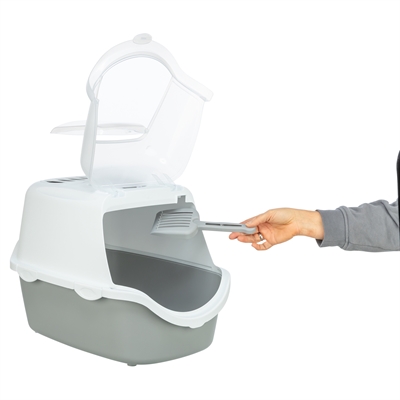 Pour nettoyer le bac, il suffit de rabattre la façade avant. Utilisez la pelle fournie pour enlever les excréments et changez régulièrement la litière. Vous pouvez également rincer le bac à l’eau tiède et au savon doux.