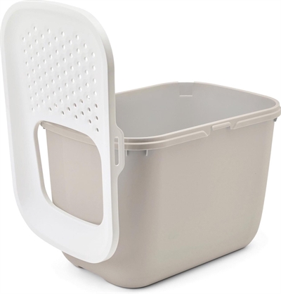 Savic hop bac à litière en mocca / blanc 58,5 x 39 x 39,5 cm est un bac à litière moderne avec entrée par le haut, idéal pour les chats qui urinent debout ou à reculons. En effet, les côtés hauts gardent les gravillons, les fèces et l’urine bien à l’intérieur du bac ! Les chats comprendront rapidement comment utiliser le bac à litière par l’entrée supérieure. La grande ouverture permet aux chats d’entrer et de sortir facilement et rend le bac à litière adapté aux chats de grande taille. Pour plus d’hygiène, le couvercle est légèrement incliné et pourvu de petits trous : si le chat marche sur le couvercle en sortant du bac à litière, la litière retombe dans le bac. De plus, le bac à litière est doté de poignées au fond et d’un couvercle qui peut être suspendu pour faciliter le nettoyage. Vous pouvez également accrocher la pelle à litière sur le crochet.